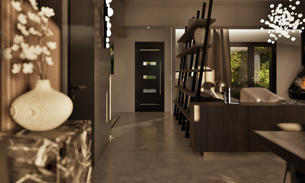 Positionnée entre l’entrée et l’espace de vie, elle agit comme un filtre. Elle laisse passer la lumière, suggère les volumes, mais ne révèle jamais tout immédiatement. Elle organise le parcours.